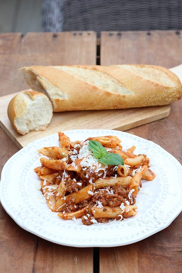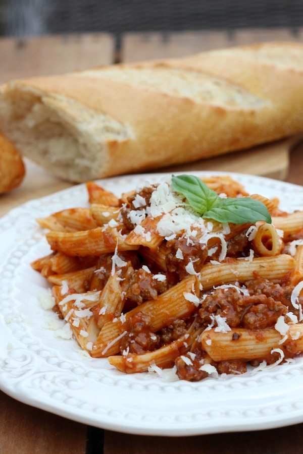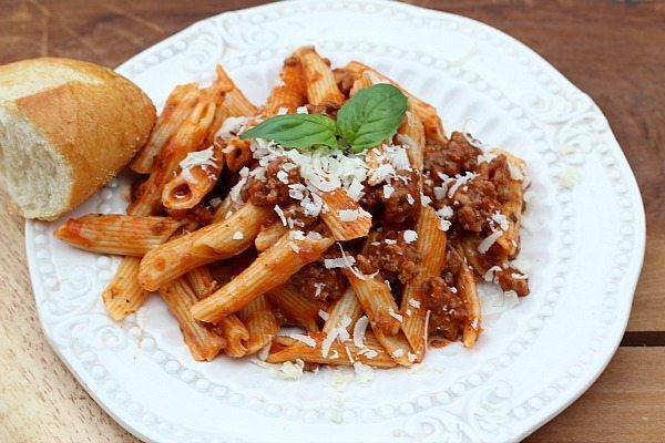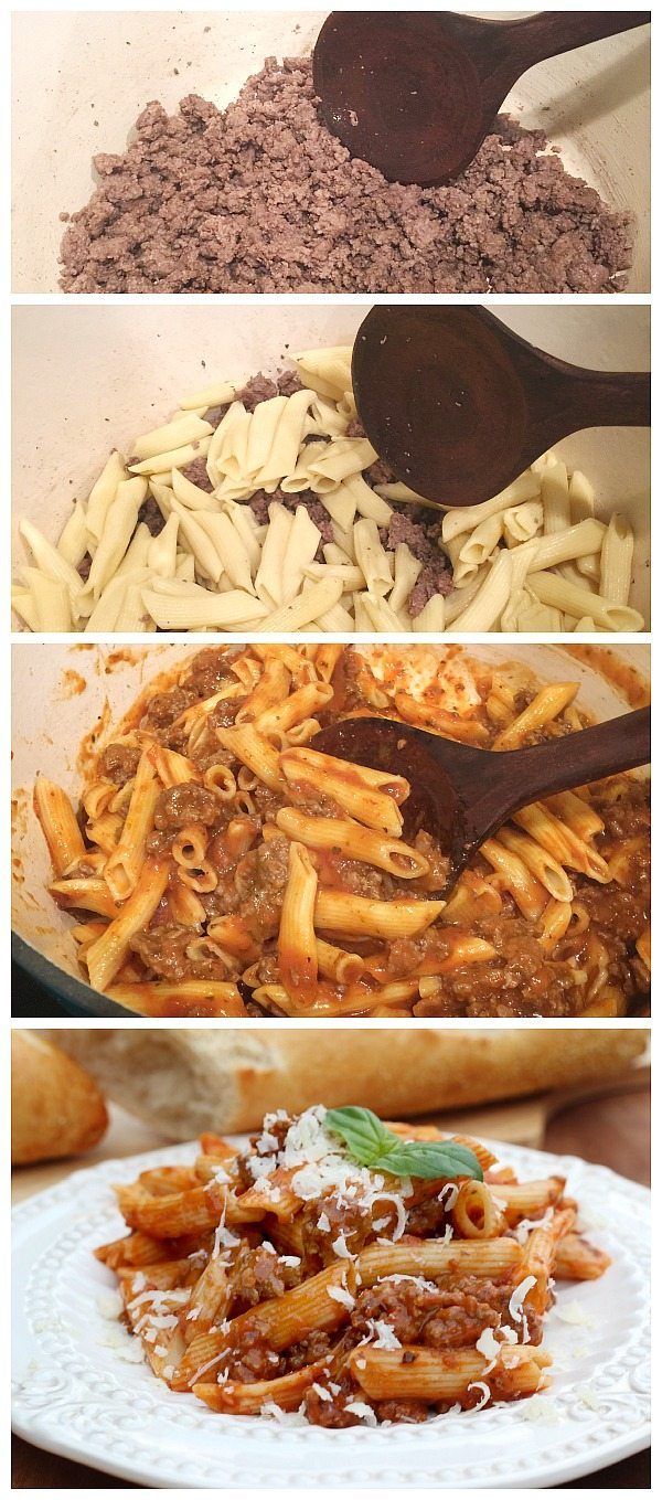 Everything you need in one package, it comes with lean ground beef, cooked pasta and marinara sauce. All I did was brown the ground beef, drain, add pasta and sauce. Easy as could be. And it only required one pot. I grated a little fresh parmesan cheese to top it off. We also added bread with this meal but a salad would be great too!