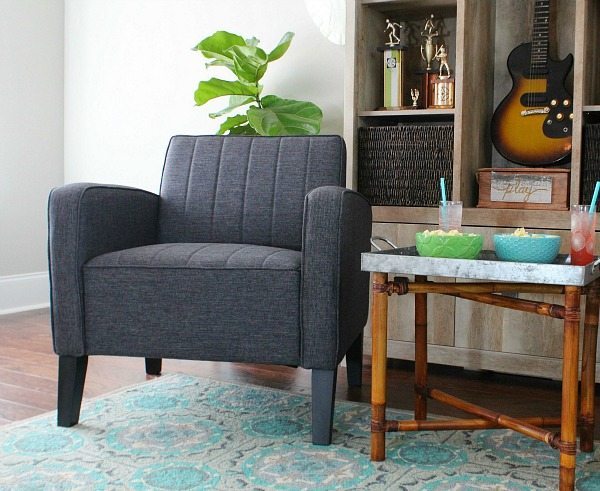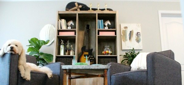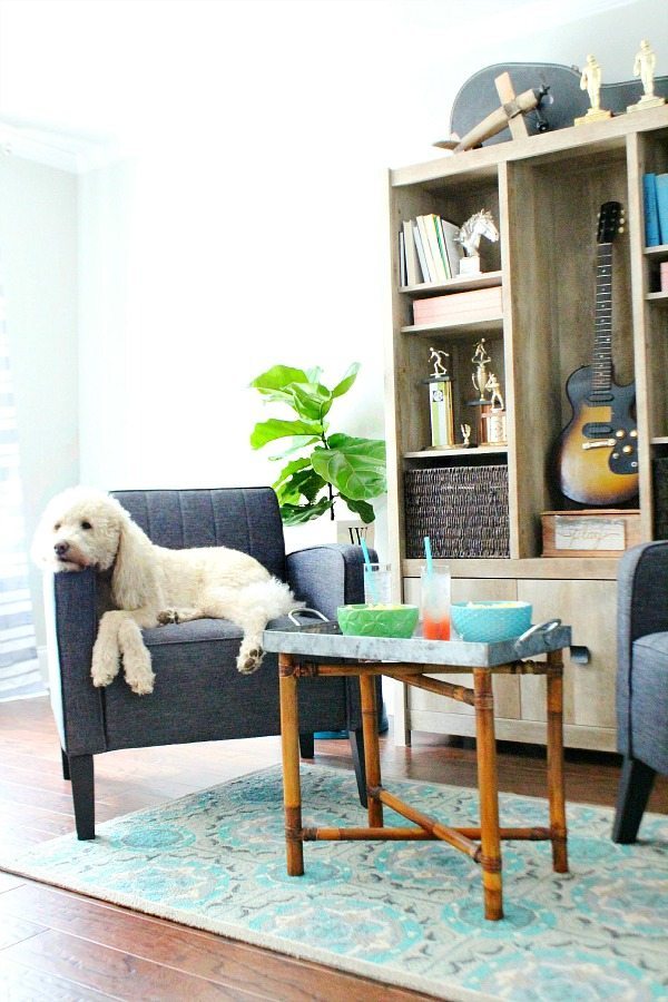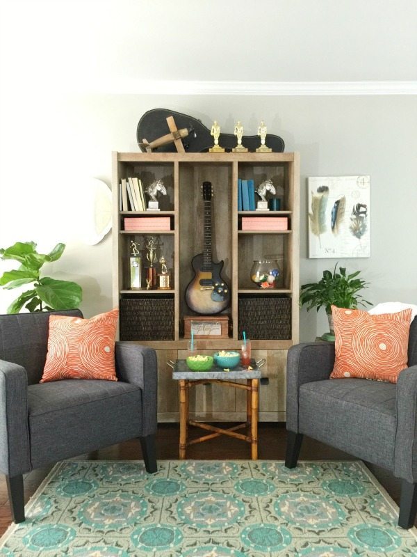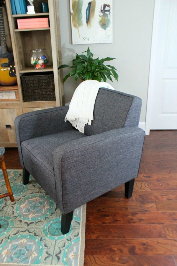 The addition of two chairs and a bookcase were perfect for this spot. Great conversation area with the casual look that we were going for.