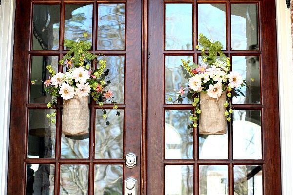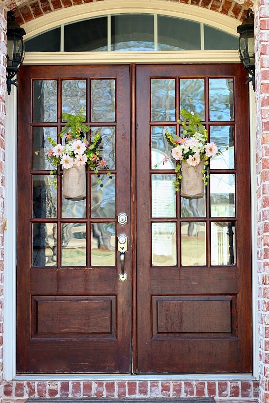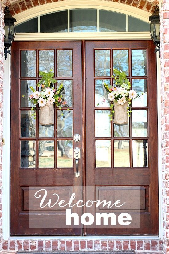 Debbie, so love your beautiful burlap bag floral arrangements on the doors!…So very creative! Loving your front doors, they are so very similar to mine. Have a great weekend and Happy Easter!