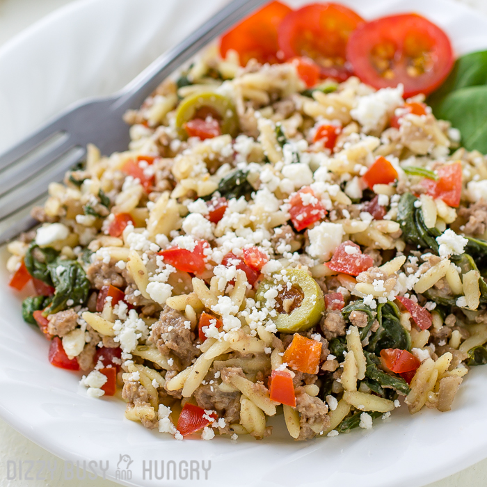 Beef and Orzo Skillet Meal from Dizzy Busy Hungry