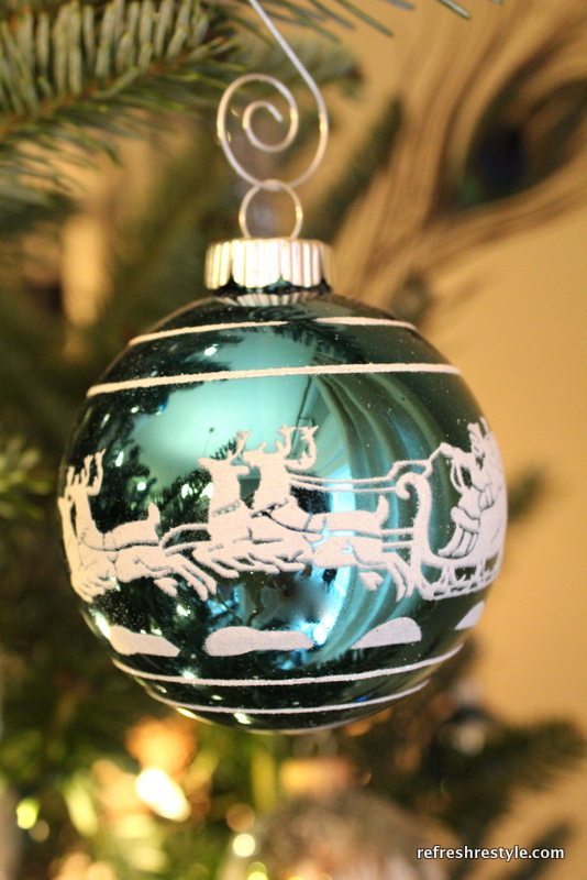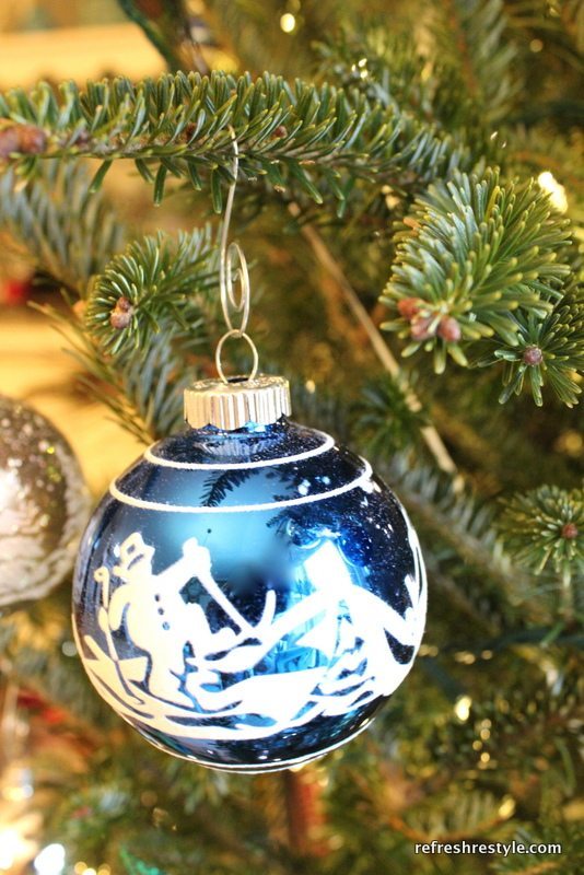 Debbie, for a split second I had thought about putting a tree in my turquoise ice cream churn that I bought this summer, but since I had a fake tree it wouldn’t fit. Great minds think alike. Love those blue Shiny Brites. I always love the ones with writing on them.