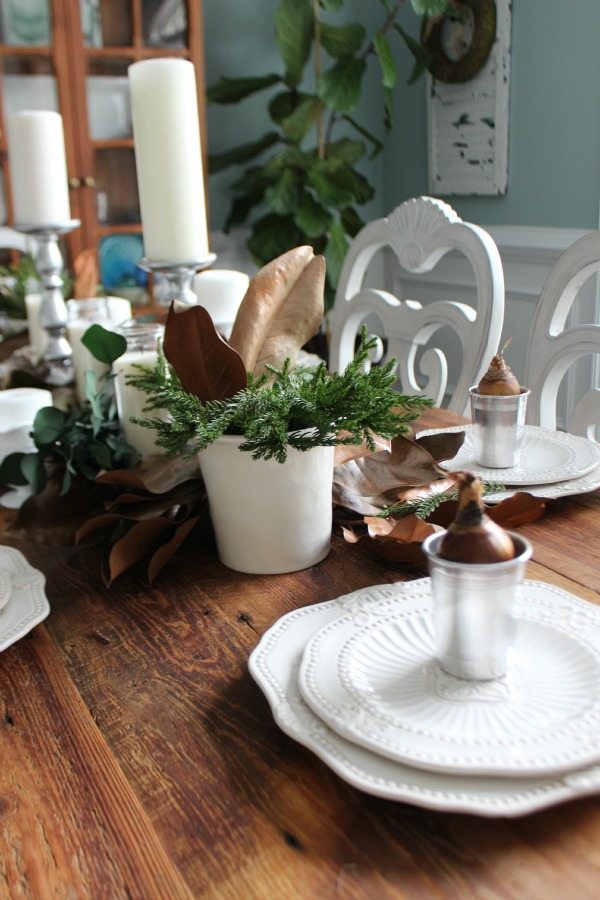 Paperwhites in silver cups make the perfect gift for dinner guests.