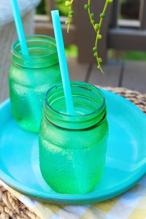 And maybe it didn’t start out as a tray, but a clay saucer is the perfect way to serve a few drinks and use to create a flat surface over a woven stool.