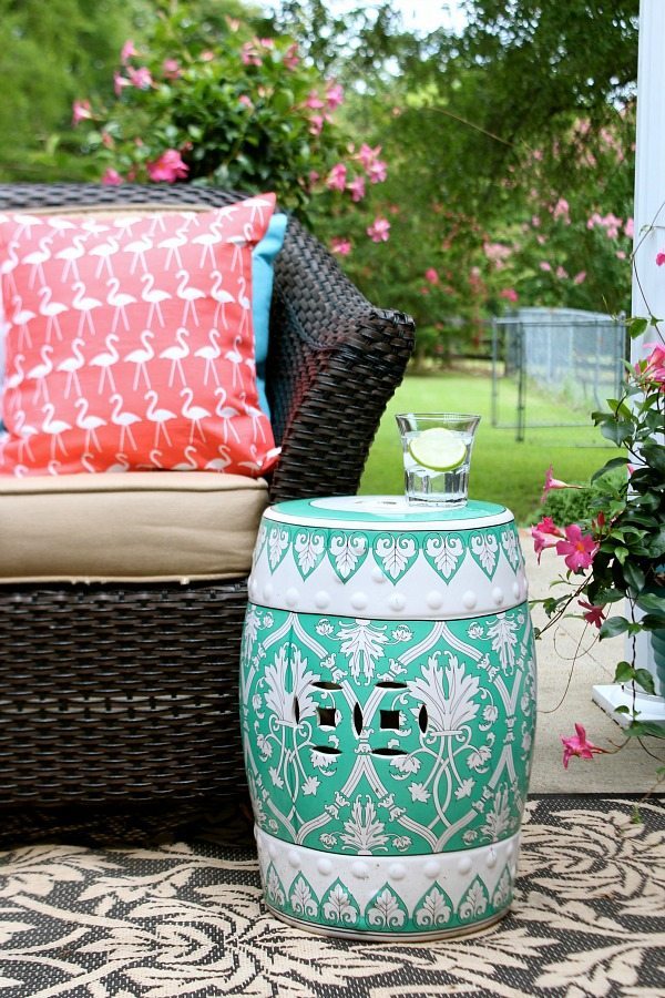 I love the colors you chose. And the garden stool is so pretty. What a pretty spot to relax.
