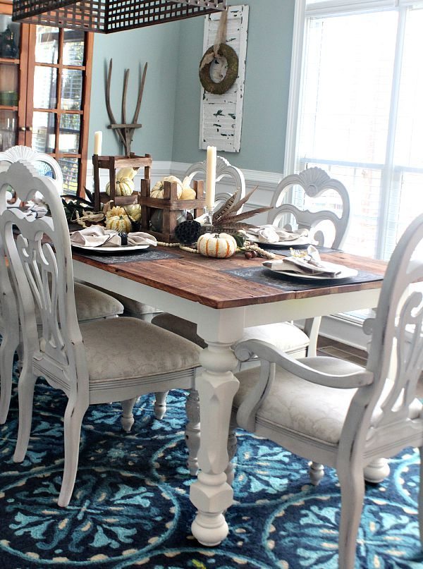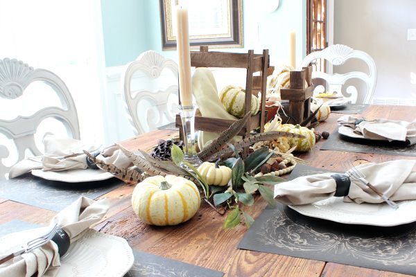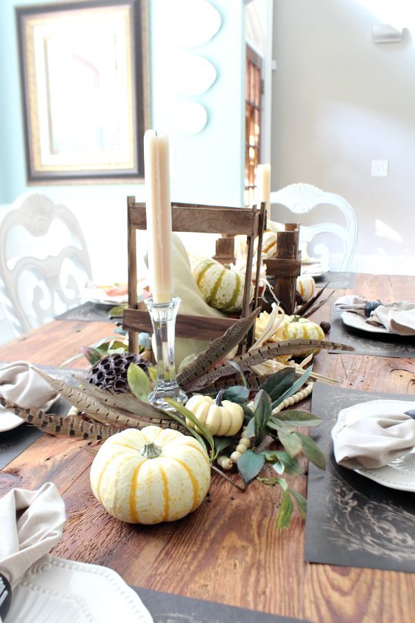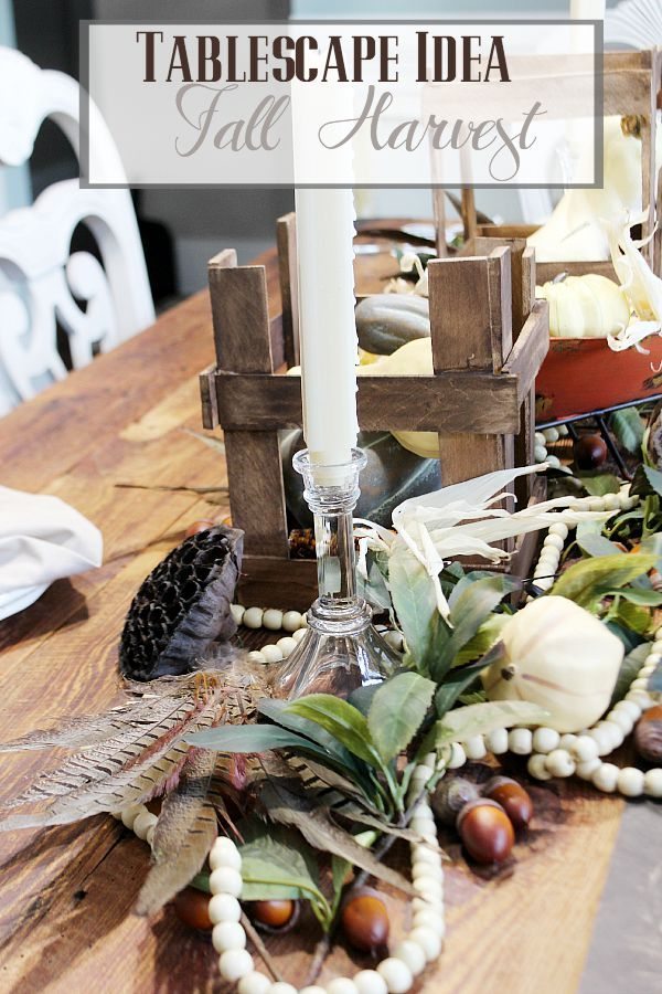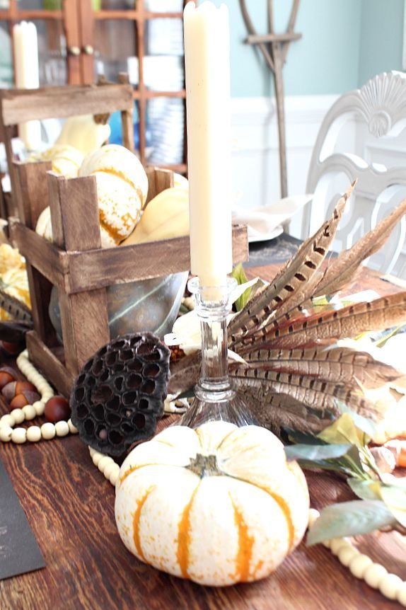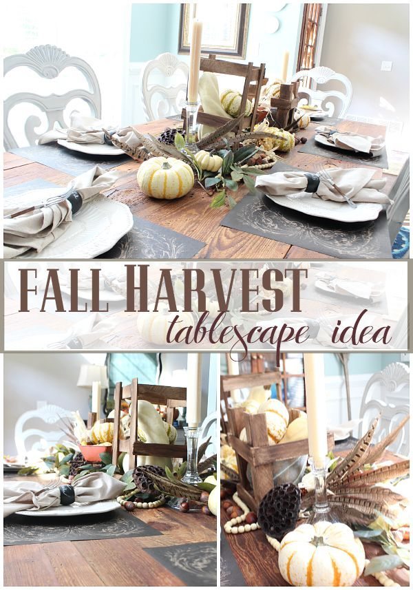 My farm table neutral tablescape is my favorite so far. Fall is all about harvesting and so is my little idea.