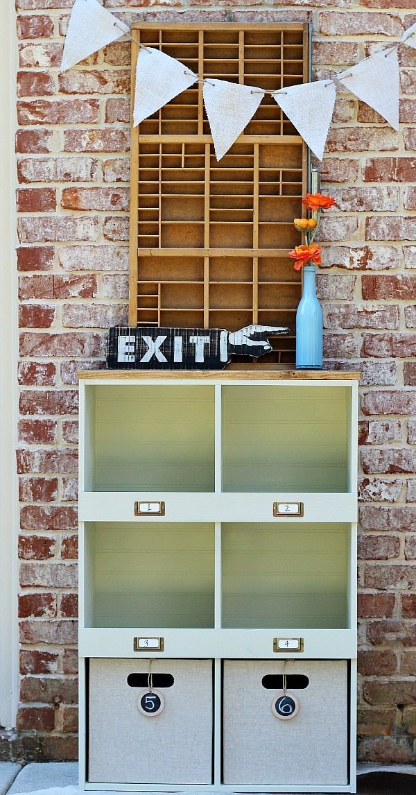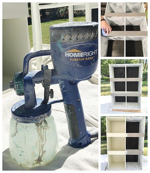 Today I’m sharing my idea for adding a little farmhouse personality to the Lowe’s ClosetMaid 6 Expresso Laminate Storage Cubes. And to share the news, yeah, the HomeRight Finish Max paint sprayer is now available at Lowe’s!