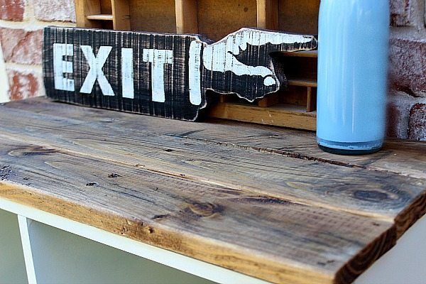 - Measure and cut pallet wood, to fit the top of you piece. Pre-drill and attach with nails. Sand, Wax or stain if you want to darken the wood.
