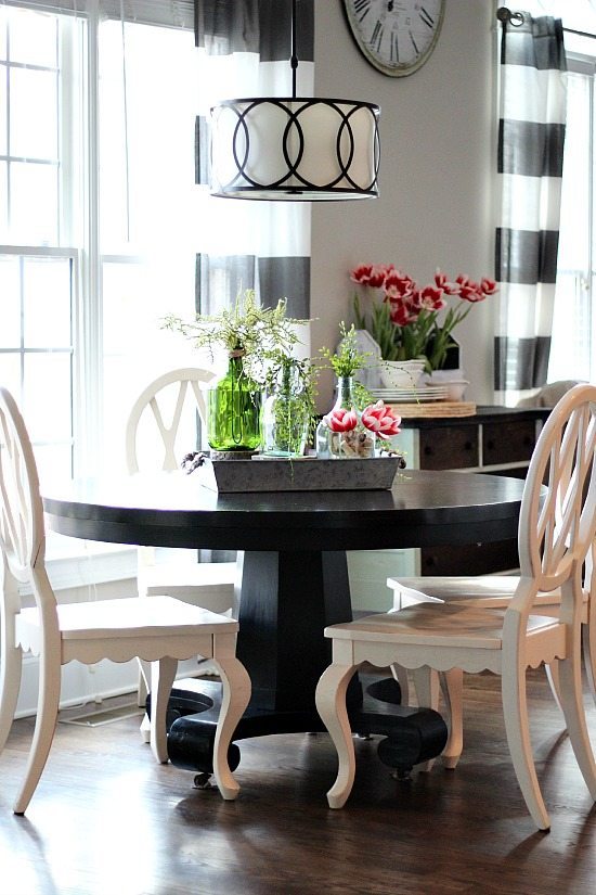 First of all, you are rocking that new home!!! I am in love with this room. The tablescape is just simply beautiful. I need to ditch my box wine for the jug wine….hee hee. Like you I love those pricey Pottery Barn bottles, but not in the budget! Just beautiful. Thanks so much for joining the tour! ~Christy