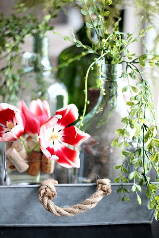 Absolutely beautiful, Debbie! My husband is a wino, not really ha ha but he does enjoy a glass or two with dinner and every time toss a bottle in the recycler, I say out loud that I wish there was something I could make with them! Your vignette is just perfect as are your beautiful photos. XO