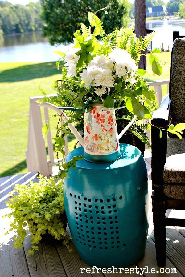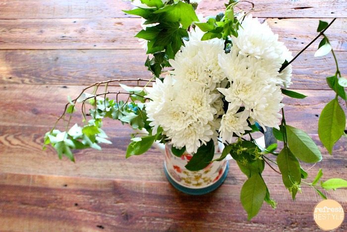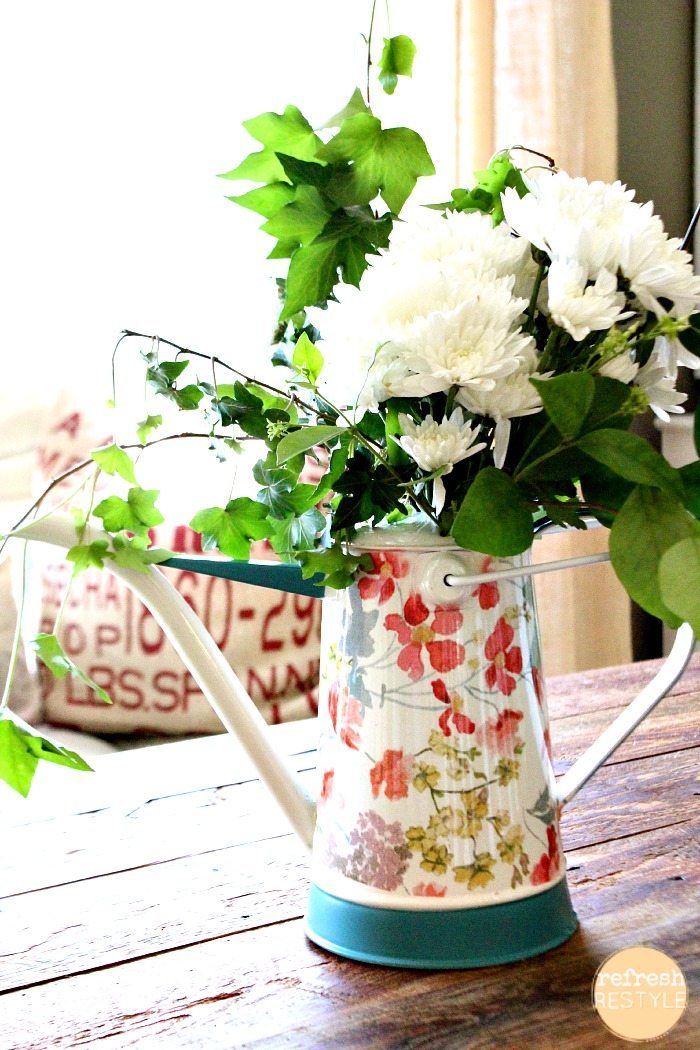 Love your pretty arrangement in the watering can. There’s nothing like having fresh flowers in your home!