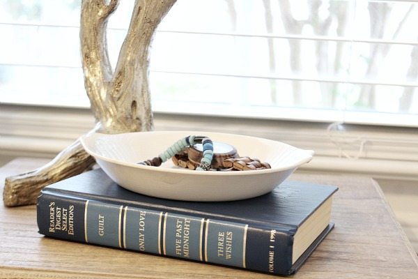 Though I admit when you wrote “shopped the house for books, candle and an ironstone bowl โ to hold jewels or watch or whatever” I was hoping for a “bell, book and candle” :))))