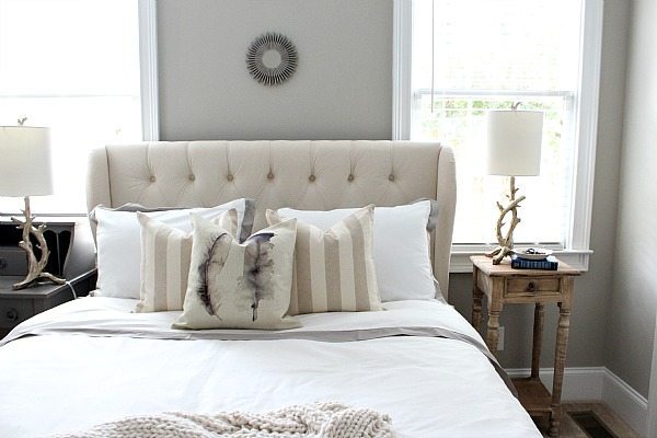 Shut up! That headboard did not come from Walmart?? They surprise me every time…gorgeous!! I love everything about this space. I know your Mama must love staying with you! XOXO