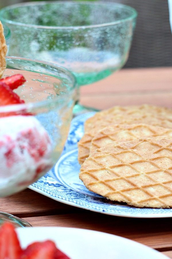- Add Butter Waffle Cookies and sliced strawberries to garnish.