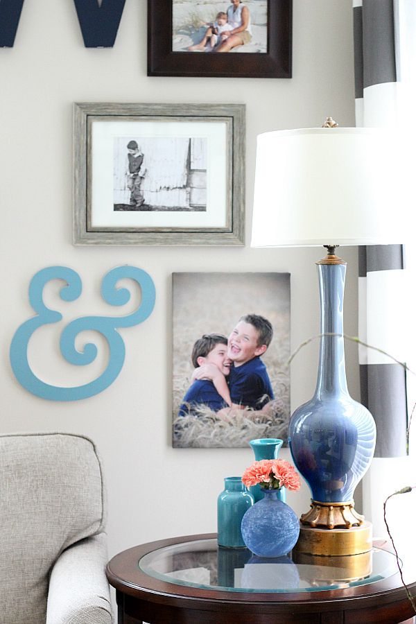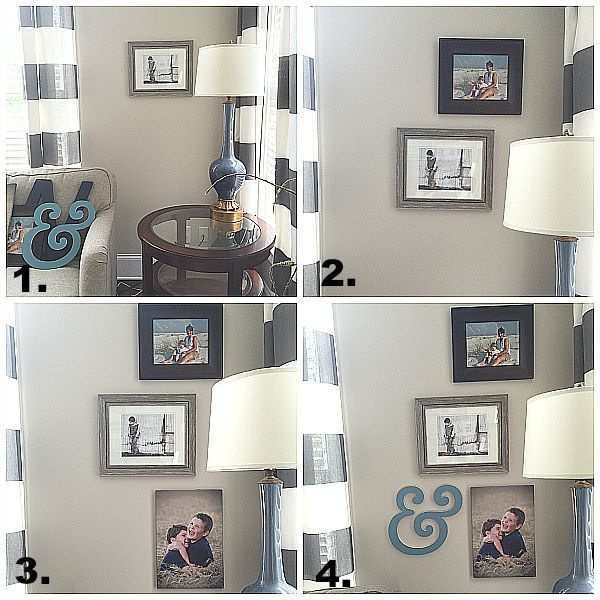 - I fell in love with this blue “&” sign, I found it at HomeGoods. I used it to fill in to the left or the 3rd photo.