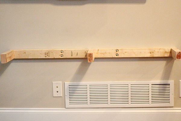 Use the 3″ wood screws to attach the 3 arms to the 48 1/2″ frame, do this from the back before it’s attached to the wall, are you saying DUH ;). One arm on each end and one in the middle.
