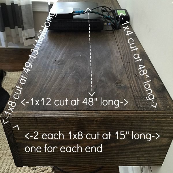 Love the shelf and my husband is getting ready to build it! He’s curious as to why the 1 back frame board (2″ x 3″ x 48 1/2″ long frame) is cut to 48 1/2, but the two top boards (1″x12″ board cut at 48″ long and 1″x4″ board cut at 48″ long) are cut to 48″. Shouldn’t the frame board be cut to 48″ as well? Thank you for your advice.