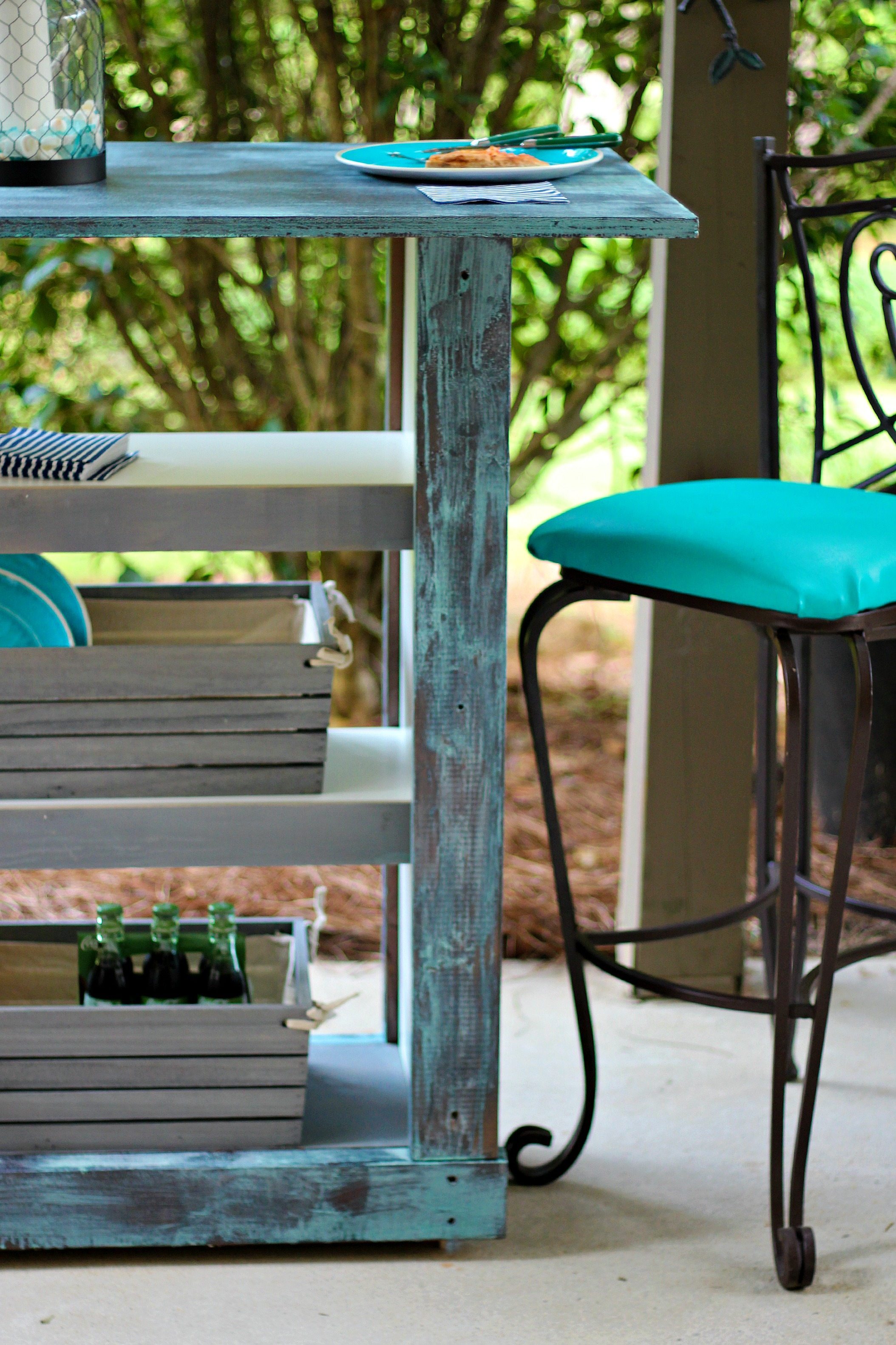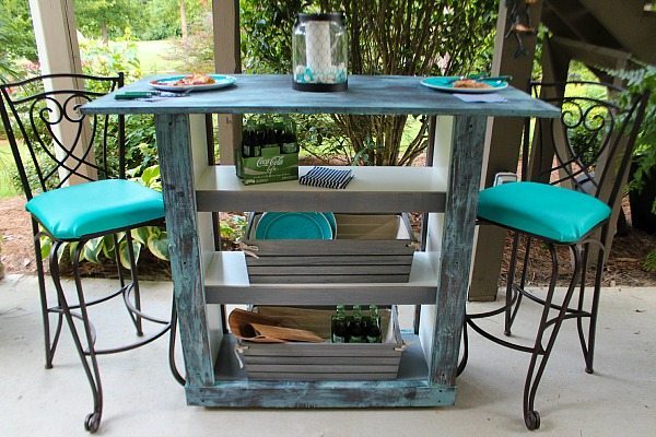 Your bar table from an Ikea Billy bookcase turned out great. I am loving the colors!
