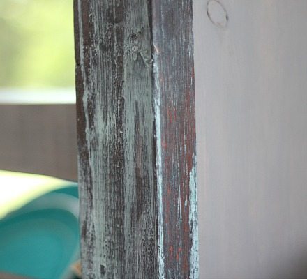 I wanted the 2″x 4″ trim and top to be painted with Modern Masters Metal Effects, a two-tone, copper and patina finish. I brushed these on, but you can use the Finish Max with their paints also. I was just too lazy to tape off my gray-washed areas.