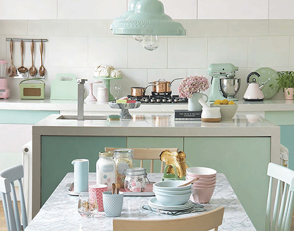 Oh my gosh, I am in love with this kitchen in pastel colours <3 Thanks for posting!