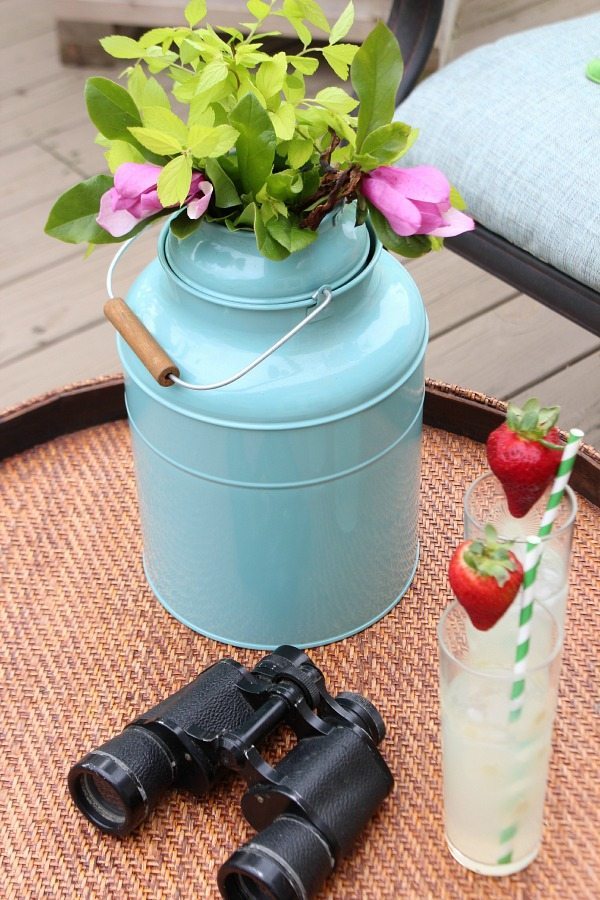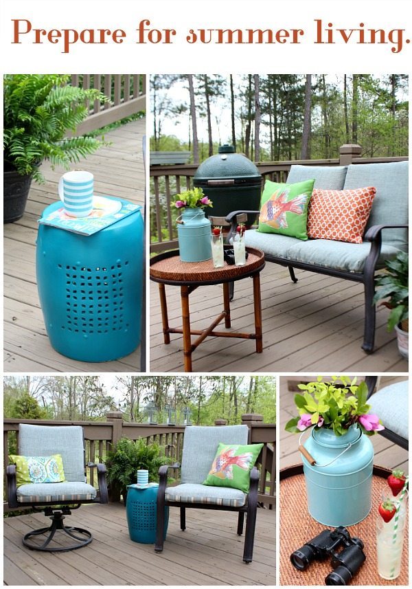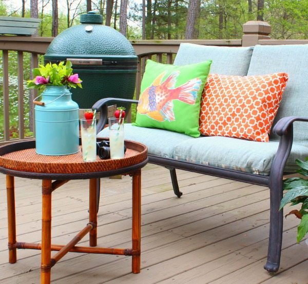 After moving in the fall, I could not wait to get started preparing our outside spaces for spring and summer. We have a wood deck off the living room and a cement patio under it. I love both spaces, even though the deck gets a lot of direct sun, it’s a favorite of mine to have morning coffee, a glass of sweet tea or even lemonade on in the evening. We love to grill store bought pizzas on the big green egg for a quick summer meal or start a Boston butt early on Saturday morning and let it cook slowly while we mess around the house. I bet you can almost smell it!