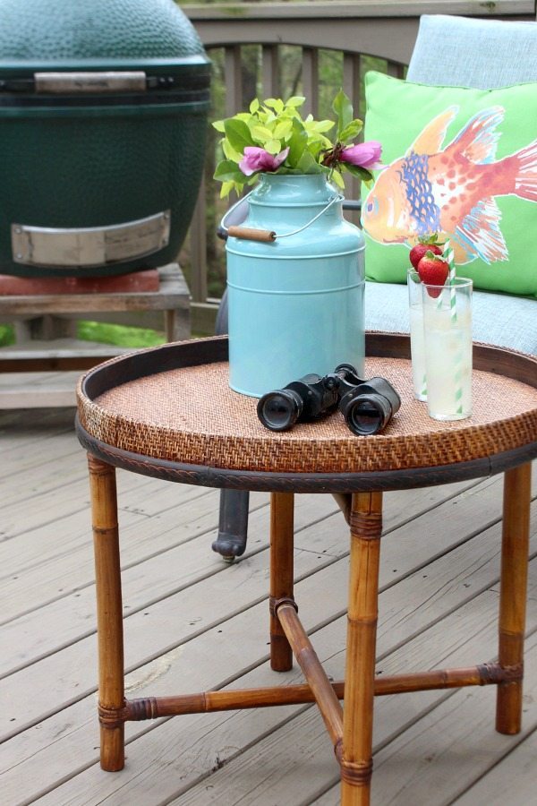 - I also have this thrifted bamboo table that’s perfect in front of the outdoor love seat.