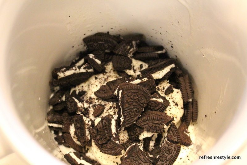 This is before it was blended. I broke the cookies up, just to help the blending 🙂