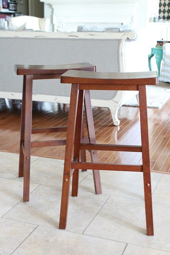 After Justin proposed to Jessica, I started painting my excess furniture thinking they would be able to use some of it when they got a house of their own. These two bar stools were some of my excess ๐