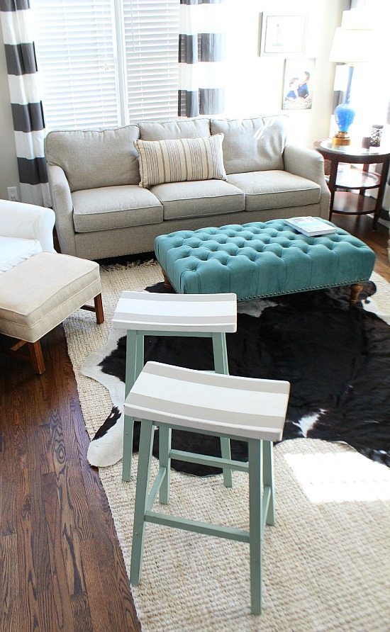 I think I have the same jute rug as you. Does yours leave little jute fuzzies EVERYWHERE and cover all your clothes if you sit on it? I love the look, but the mess is making me crazy. Love the stools, by the way! http://tidbits-cami.com