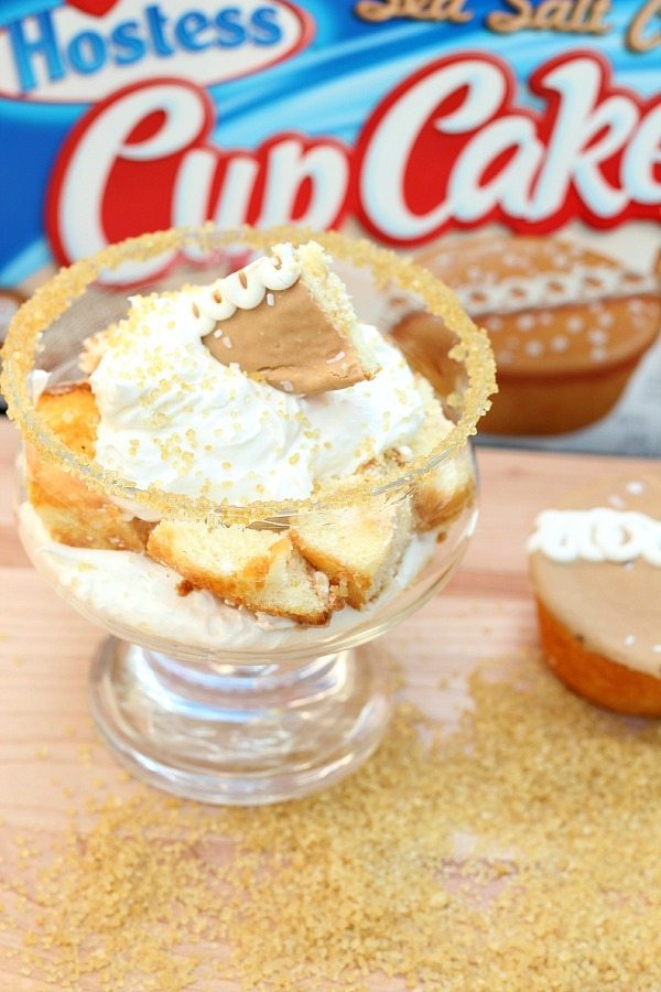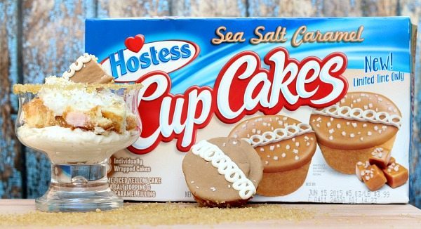 Hostess is offering these Sea Salt Caramel Cup Cakes for a limited time, made with golden yellow cake with a core of caramel crème they’re perfect for trifles!