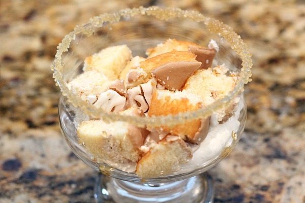 Before layering the ingredients, I rubbed the rim of the dessert cup with a little caramel and dipped the glass in natural sugar. This is totally optional, but it makes it look so decadent!