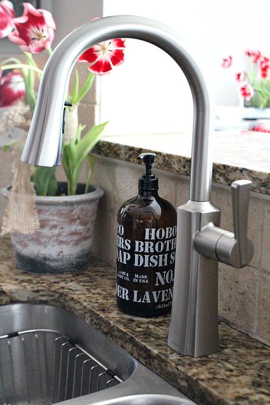 Funny thing was that Barry had just changed out our faucet at our previous home (before we found out that we were moving)! You know I hated to leave that new faucet!