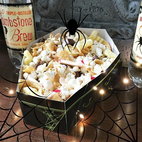 You can add any sweet and salty mix that you like. This is so easy and fun to serve at a Halloween party.