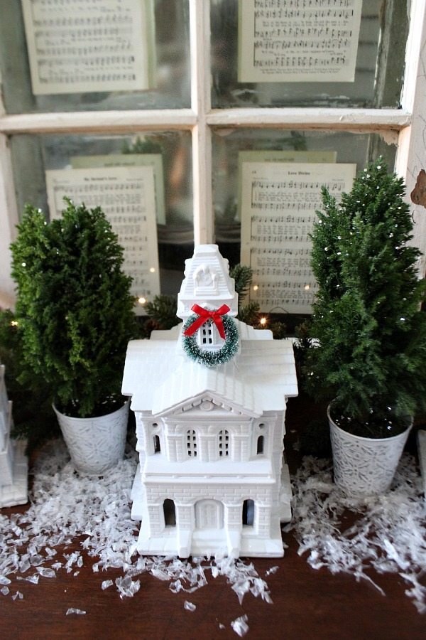 OMG I just love this entire idea! I’m on the hunt for a village to paint for next year. The white and green is so beautiful and the window panes and sheet music add so much. What a brilliant idea. You are a genius!! Thank you for once again sharing a great idea. Merry Christmas